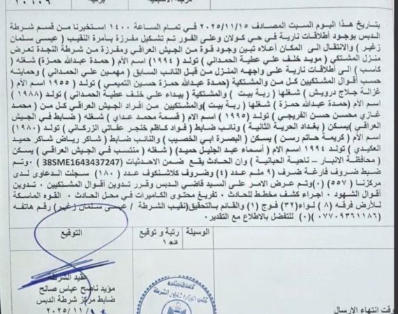 موصل تايم كشف مصدر أمني في محافظة كركوك، اليوم السبت (15 تشرين الثاني 2025)، عن تفاصيل حادثة اعتداء…