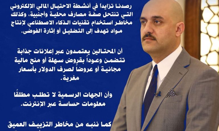 موصل تايمحذر جهاز الأمن الوطني، اليوم السبت (1 تشرين الثاني 2025)، من تزايد الاحتيال الإلكتروني والتزييف العميق. وأكد الناطق الرسمي باسم جهاز الأمن الوطني العراقي أرشد الحاكم في بيان للجهاز تلقاه راديو “موصل تايم”، أن “الجهاز رصد تزايداً في أنشطة الاحتيال المالي…