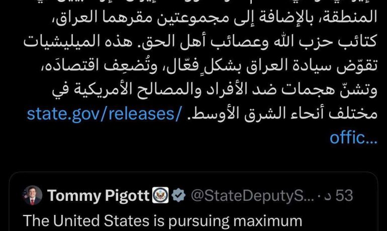 موصل تايم اعلنت الخزانة الاميركية فرض عقوبات على رئيس اللجنة الاولمبية وشقيقه وعلي غلام وشركة المهندس.. فيما اكدت السفارة الأمريكية في العراق بمنشور على تويتر انها : تمارس أقصى ضغط على ايران والحرس الثوري بالإضافة إلى كتائب حزب الله العراقي والعصائب الذين…
