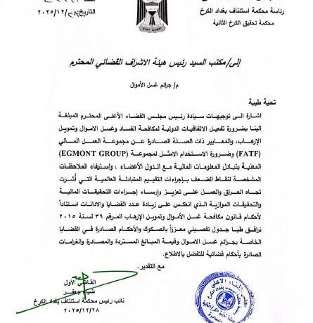 محكمة تحقيق الكرخ الثانية: 93 مليارا مبلغ الغرامات والأموال المصادرة والمحجوزة في القضايا الخاصة بجرائم غسل الأموال