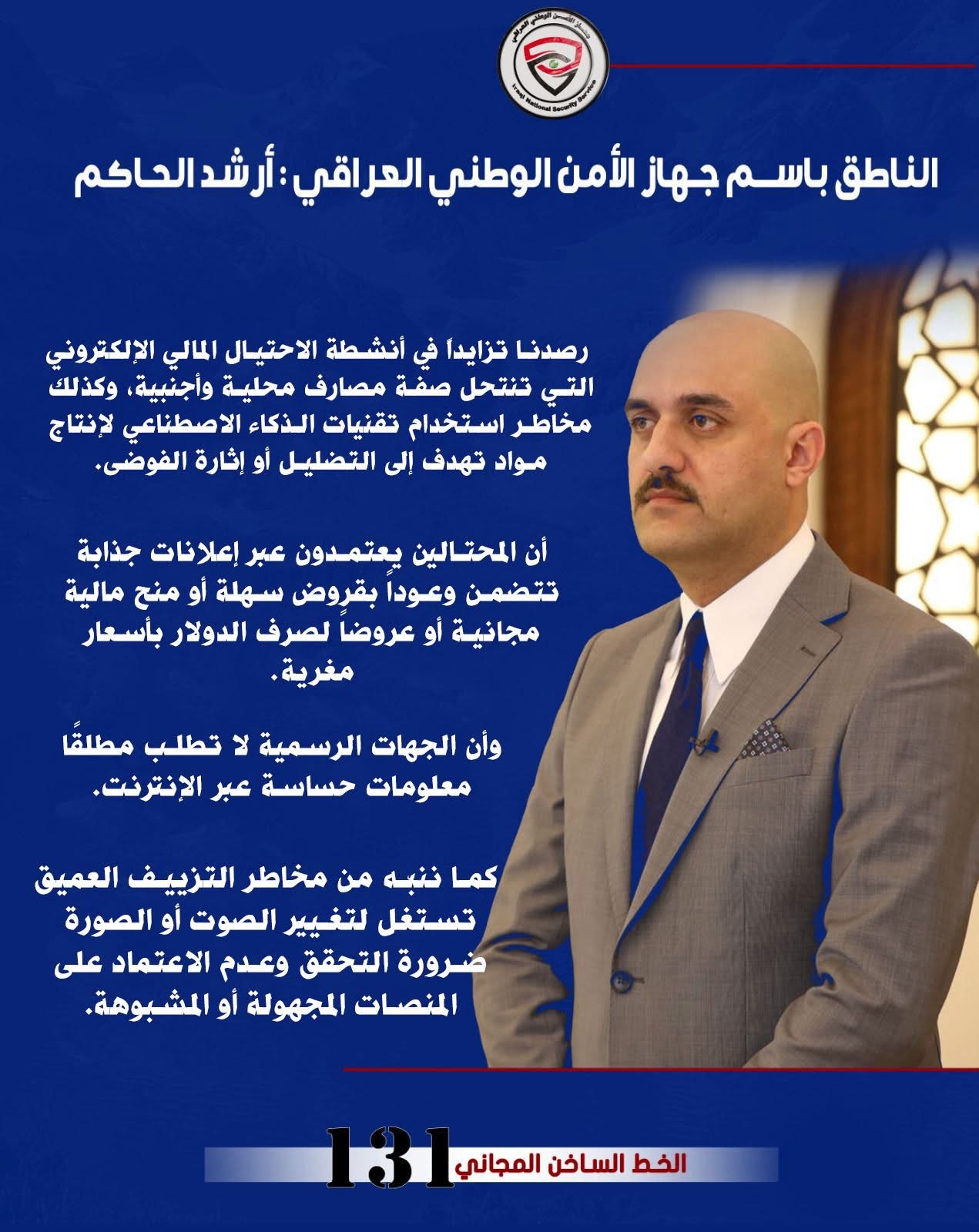 وأكد الناطق الرسمي باسم جهاز الأمن الوطني العراقي أرشد الحاكم في بيان للجهاز تلقاه راديو “موصل تايم”، أن “الجهاز رصد تزايداً في أنشطة الاحتيال المالي الإلكتروني التي تُمارس عبر صفحات ومواقع على وسائل التواصل الاجتماعي تنتحل شخصيات مصارف محلية وأجنبية، وتدّعي تقديم قروض أو فرص استثمارية وهمية بهدف استدراج الضحايا وسرقة أموالهم وبياناتهم المصرفية”.