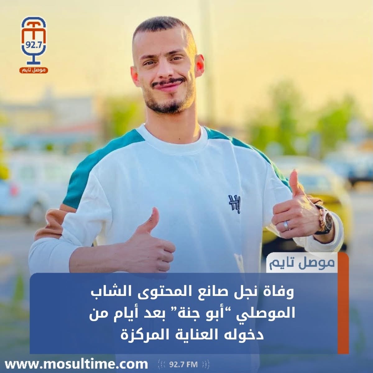 توفي الطفل حمودي نجل صانع المحتوى الموصلي المعروف أبو جَنّة، بعد أيام من إدخاله إلى العناية المركزة إثر معاناة مع المرض .
