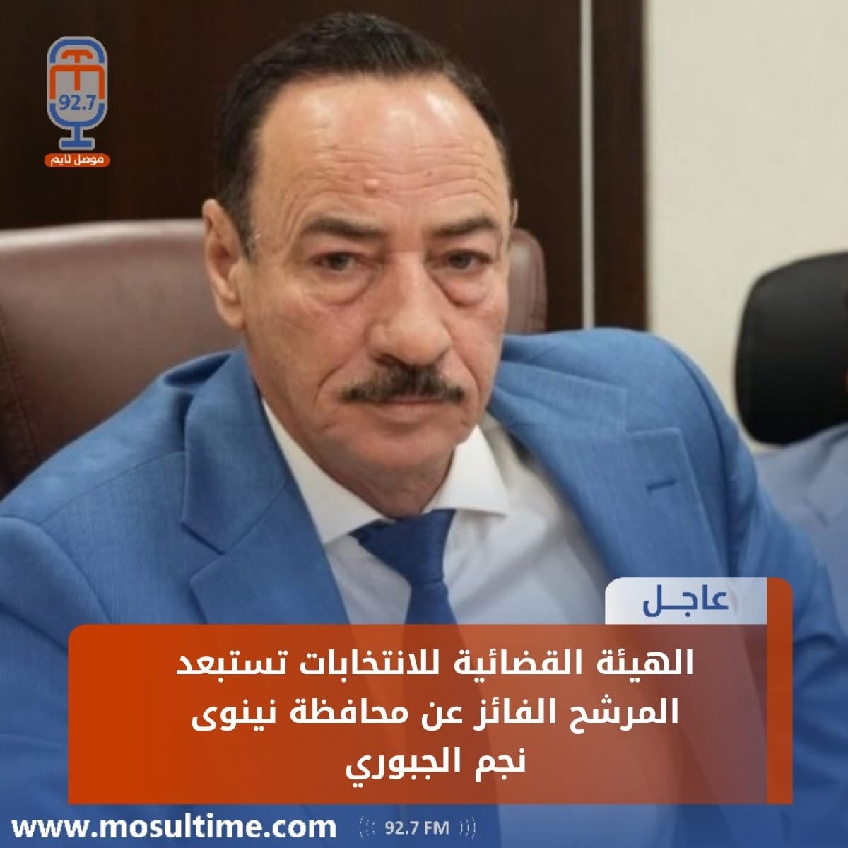 الهيئة القضائية للانتخابات تستبعد المرشح الفائز عن محافظة نينوى نجم الجبوري. اخبار Comments : 0 7 ديسمبر، 2025 Post By فريق التحرير Share : Facebook Twitter LinkedIn Share via Email Leave a Comment إلغاء الرديجب أنت تكون مسجل الدخول لتضيف تعليقاً.
