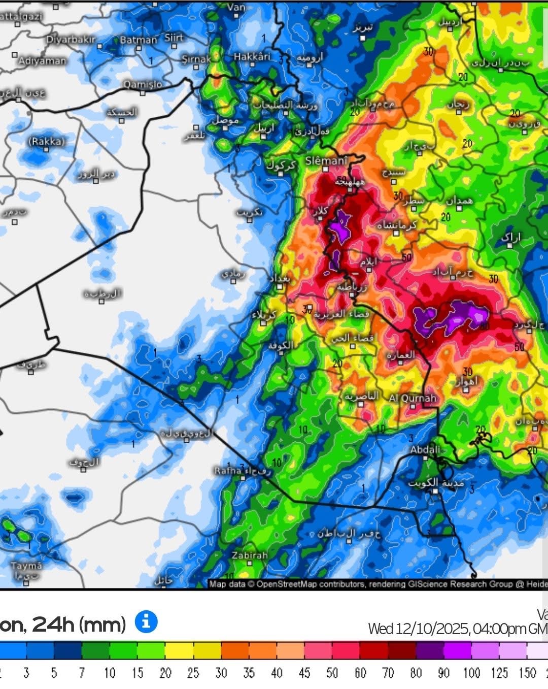 من المتوقع أن تنحسر الحالة الجوية خلال ظهر الأربعاء او مساءً بشكل مؤقت مع استمرار بعض التكونات الممطرة في السليمانية واربيل وجنوب البصرة ليلا.