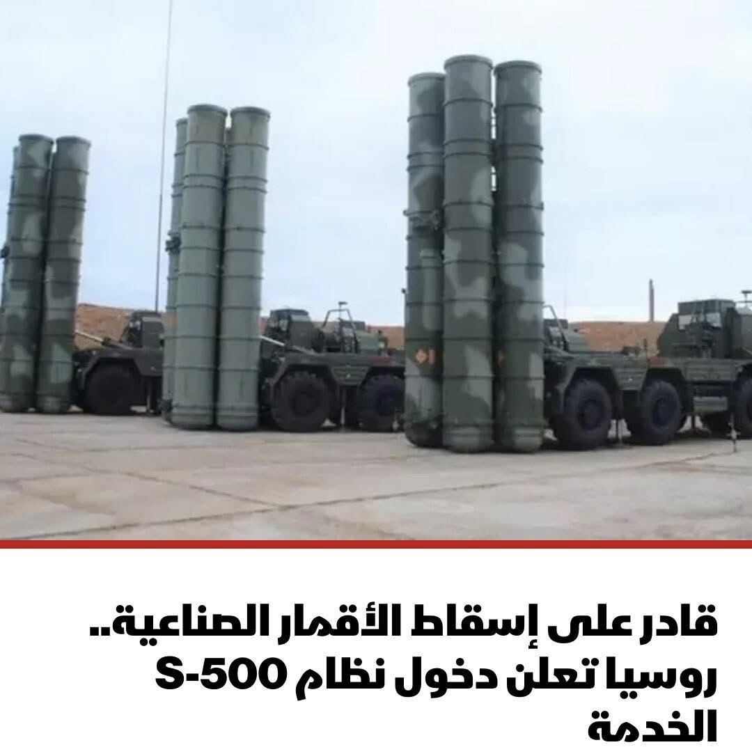 أعلن وزير الدفاع الروسي، أندريه بيلوسوف، الأربعاء، دخول أول فوج مُجهز بمنظومة S-500 بعيدة المدى، الخدمة القتالية، بعد 4 سنوات من بدء انضمام أولى مكونات المنظومة إلى القوات الجوية الفضائية في أواخر عام 2021.