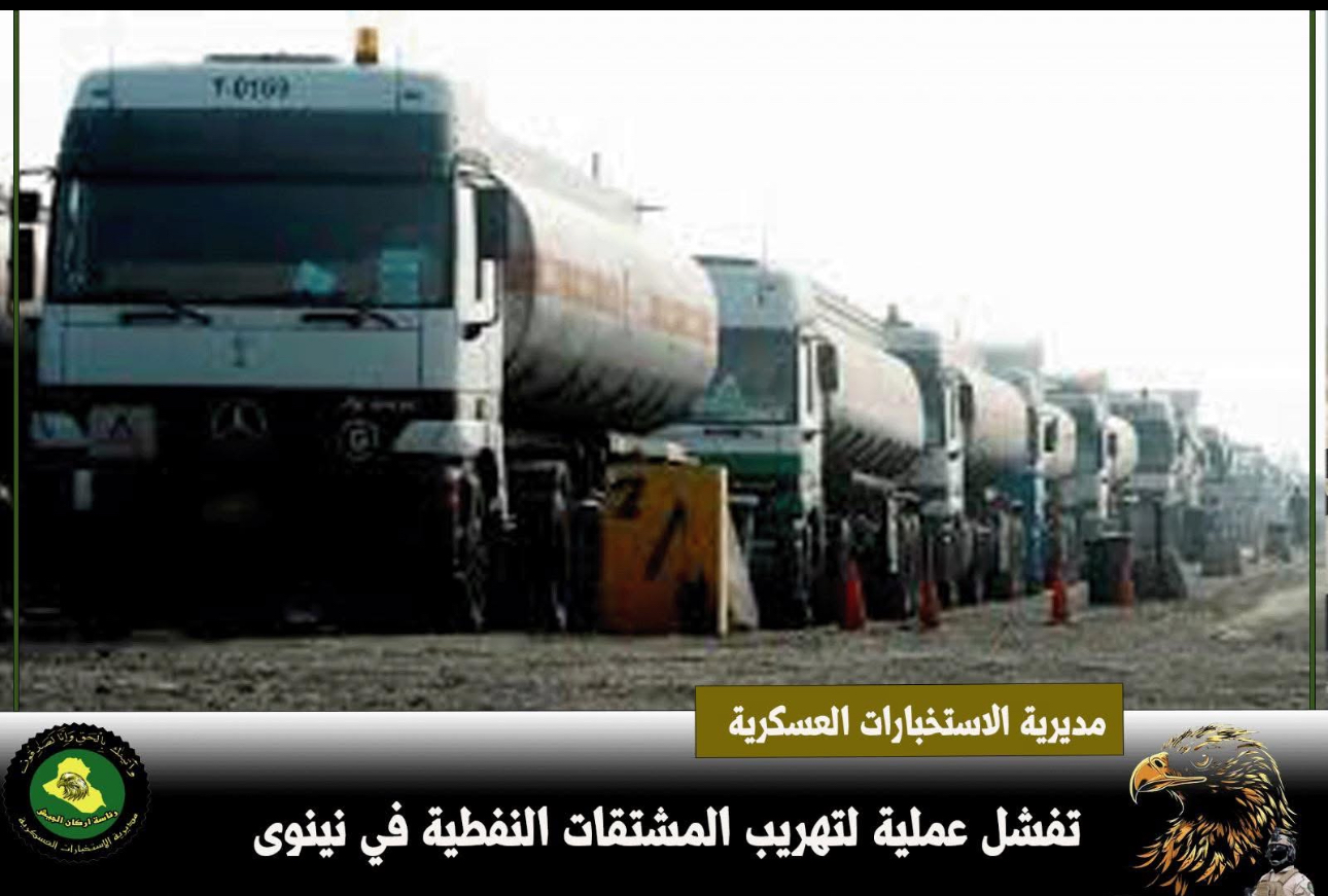 وجرى على اثرها قيام مفارز الاستخبارات العسكرية بنصب كمين محكم حيث تم ضبط العجلة مع السائق بداخلها كمية كبيرة من المشتقات النفطية المعده للتهريب في ناحية المحلبية بمحافظة نينوى
