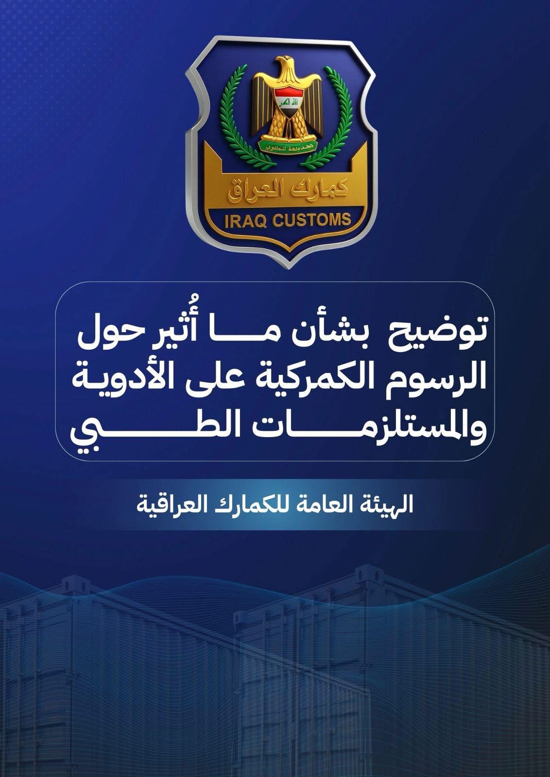 اصدرت هيئة المنافذ الحدودية توضيحا بشأن رسوم الأدوية والمستلزمات الطبية واكدت الهيئة على عدم وجود