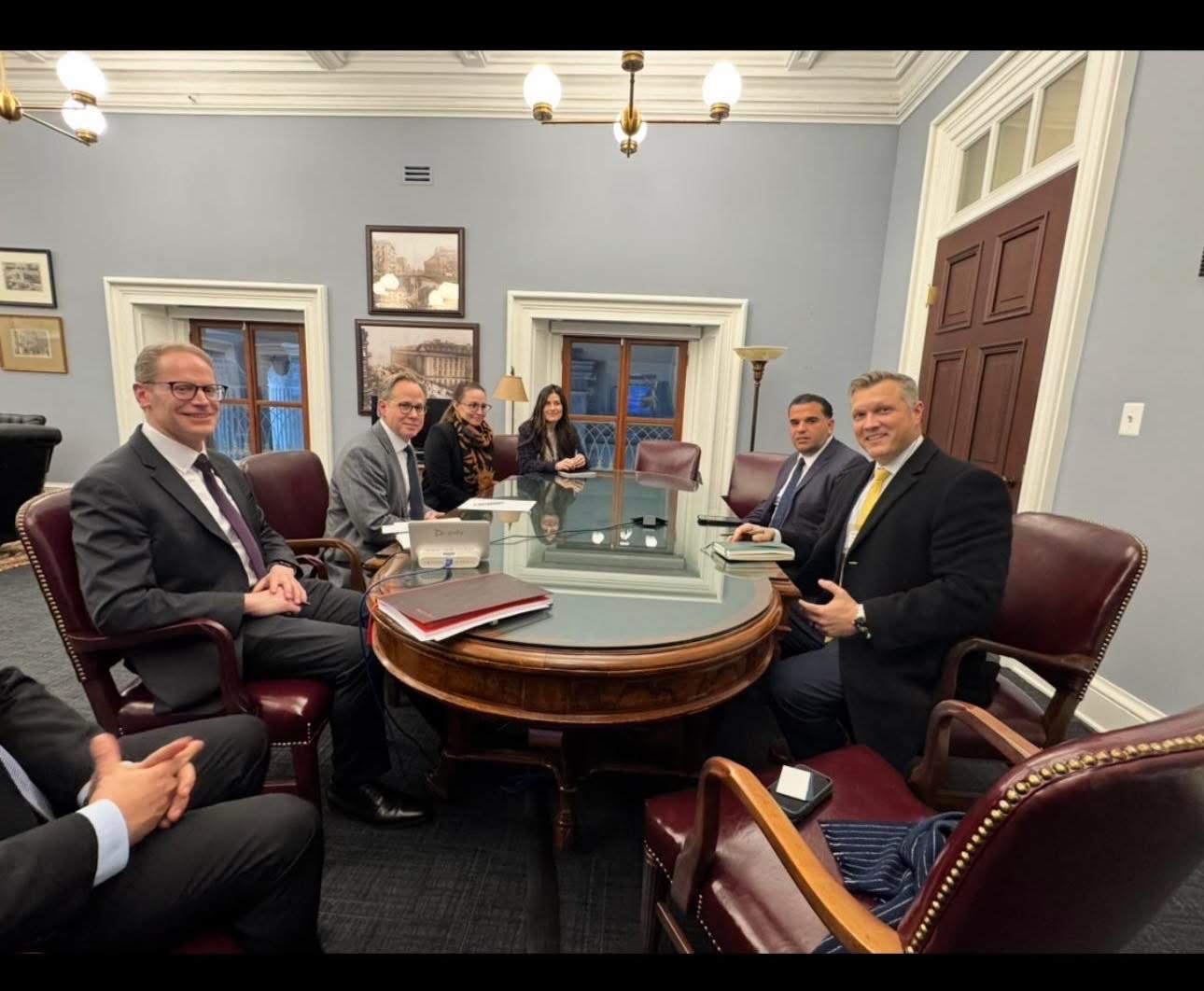 انه اجرى اجتماعات بوزارة الخزانة الأميركية ومكتب مراقبة الأصول الأجنبية لمناقشة التحديات الرئيسية وفرص الإصلاح في كل من المصارف الحكومية والمصارف الخاصة و التركيز على تعزيز الحوكمة المالية والامتثال والمساءلة المؤسسية.