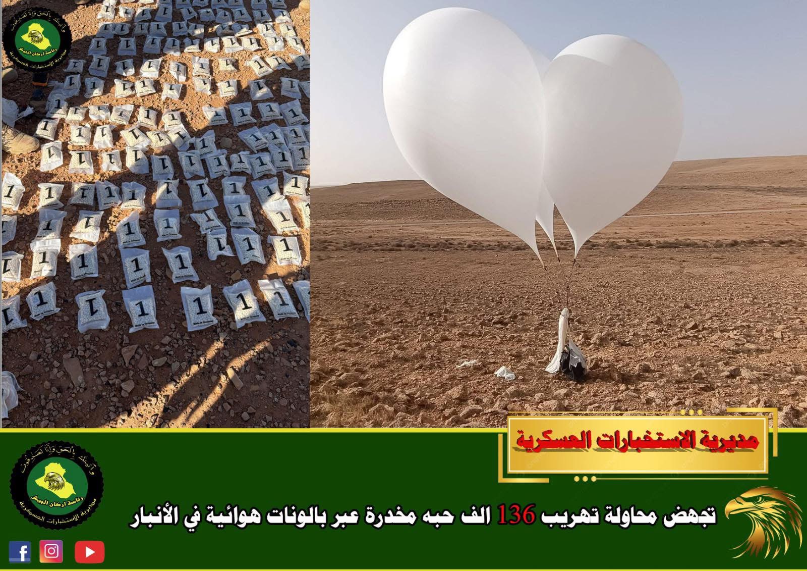 وأضاف البيان أن “هذه البالونات تم إسقاطها في منطقة صحراوية بمحافظة الأنبار، في محاولة من المهربين لتجاوز نقاط التفتيش الأمنية وإرباك الرصد الميداني”. وأسفرت العملية عن “ضبط ما يقارب 136 ألف حبة من نوع (كبتاجون) المخدرة، والتي كانت تشكل شحنة خطيرة تستهدف إغراق السوق المحلية بهذه السموم”.
