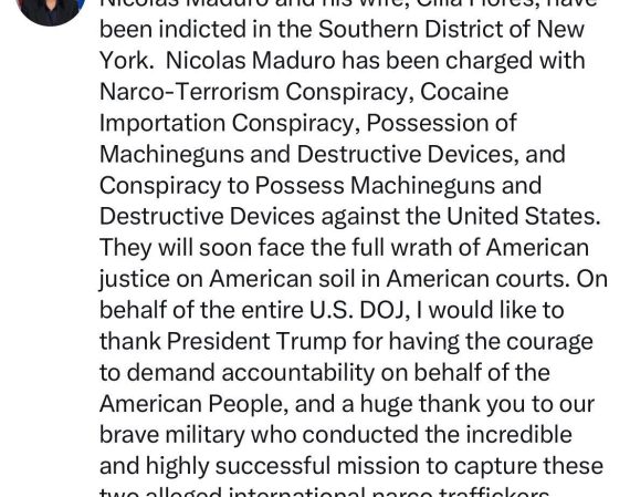 موصل تايم قالت وزيرة العدل الأميركية بام بوندي، السبت، إنه تم توجيه تهم ضد الرئيس الفنزويلي نيكولاس مادورو…