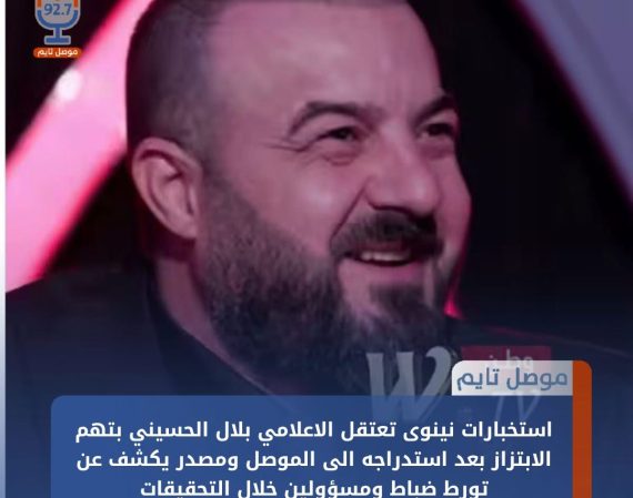 - استخبارات نينوى تعتقل الاعلامي بلال الحسيني بتهم الابتزاز بعد استدراجه الى الموصل ومصدر يكشف عن تورط ضباط ومسؤولين